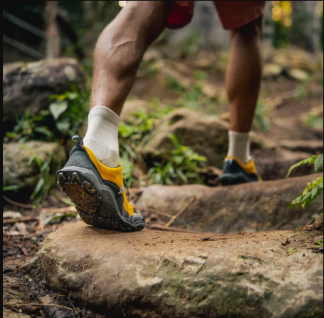 Từ đá đến cát, từ ướt đến khô – đế cao su tự nhiên mang đến cho bạn độ bám chắc và cảm nhận mặt đất chân thực trong mọi điều kiện địa hình.